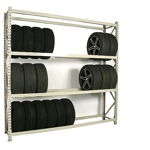 Tire racks are suitable for storing car tires and complete wheels. MAXI tire racks are designed to minimize the contact area of the tires on the rack. Thanks to the stepped crossbars, this is optimally distributed over the entire tire.